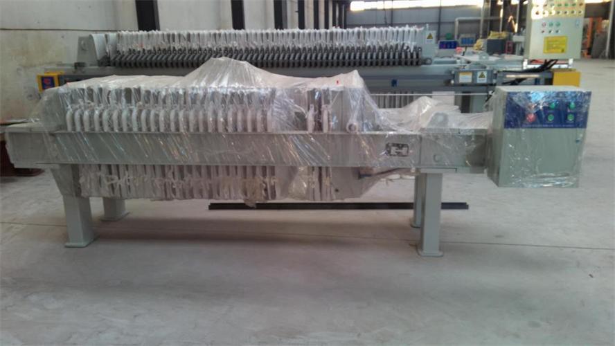 板框壓濾機在行業過濾工序中常用的機械設備,板框壓濾機主要用于固體和液體的分離。與其它固液分離設備相比,板框壓濾機過濾后的泥餅有_的含固率和優良的分離效果。固液分離的基本原理是:混合液流經過濾介質(濾布),固體停留在濾布上,并逐漸在濾布上堆積形成過濾泥餅。而濾液部分則滲透過濾布,成為不含固體的清液。